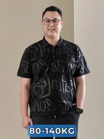 Form áo suông rộng rãi, che bụng tốt, phù hợp cho nam big size 80–140kg. Tông màu đen phối họa tiết hiện đại, sang trọng, dễ kết hợp cùng quần jean, kaki hoặc short.